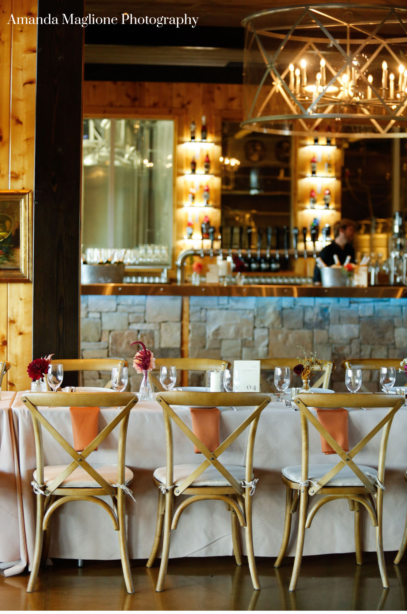 We have ceremony and reception chairs, tables, lounge furniture, and bars available as part of your wedding package. We do not have linens available for use – these can be easily rented through a local vendor.