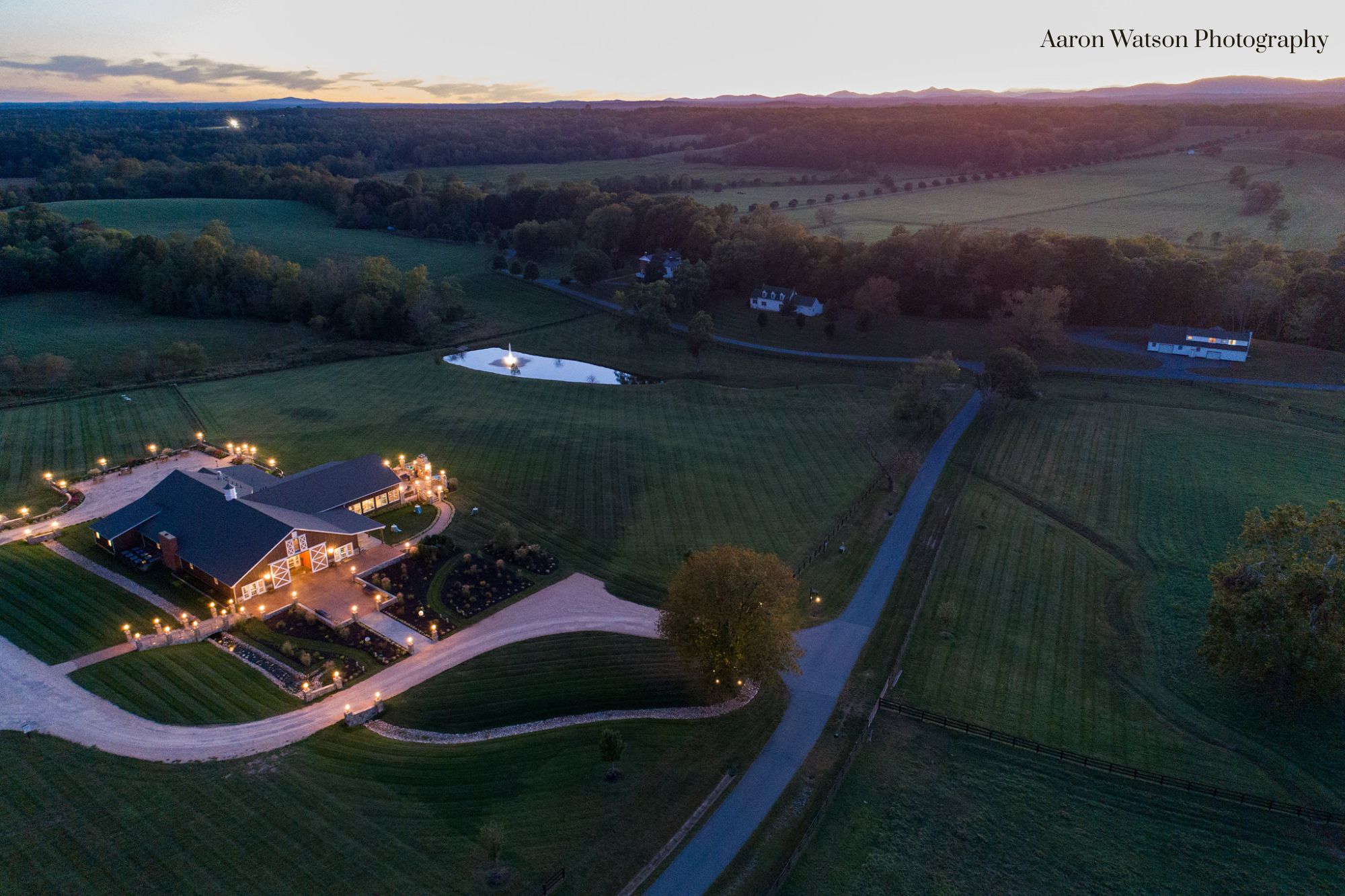 Blessed with dramatic 360 degree views, the outdoor setting for the Lodge is enhanced with spectacular stone walls, bluestone walkways, gurgling creeks and beautiful landscaping replete with enormous outdoor gathering spaces. The grove ceremony site offers the most spectacular mountain views giving life to the term The Jefferson Sea. An enormous cedar pergola to shelter the bridal party coupled with stone walls and rambling paths through the 100 year old grove offer guests a sense of paradise only enhanced by the nightly aurora generated by the beautifully backlit grove. Built with a purpose The Lodge is a vendor’s dream HVAC throughout, a state of the art kitchen, back up generator, easily accessible loading and unloading spaces for rentals, ample power and 9 bathrooms.