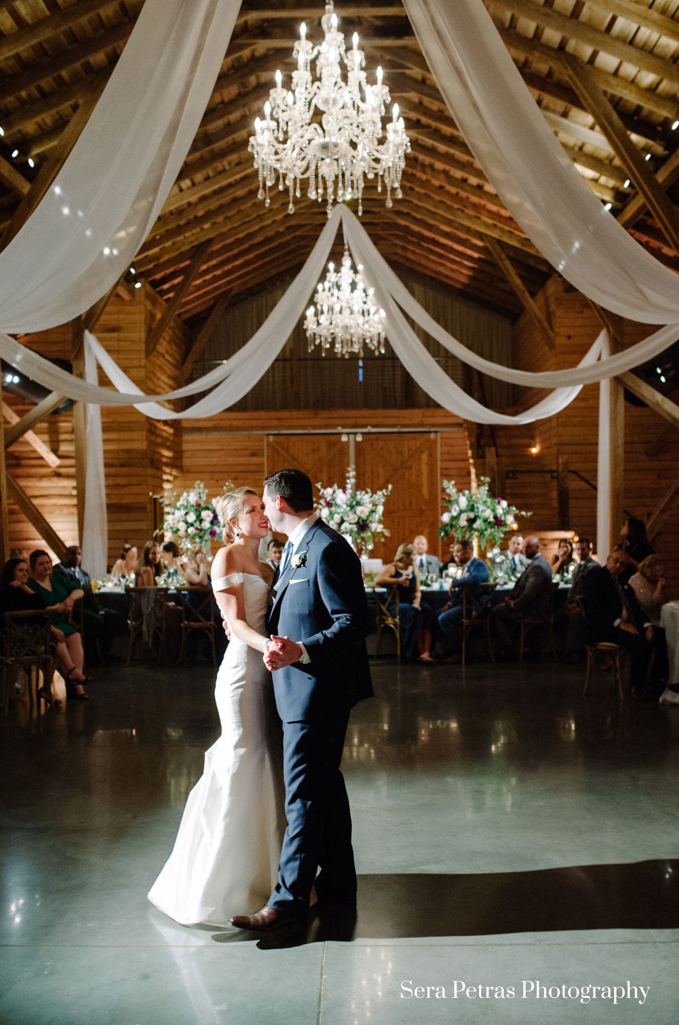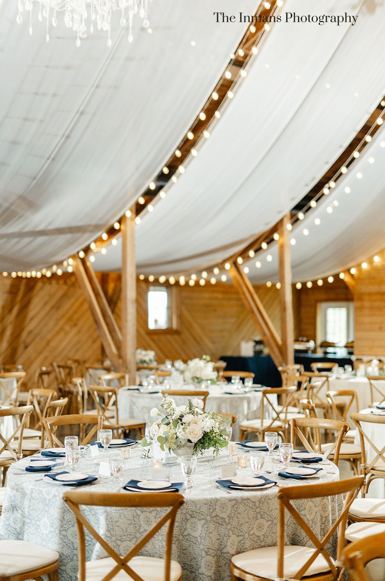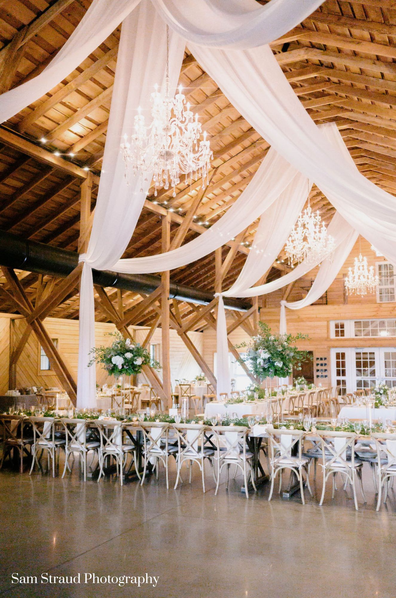 The structure was restored and expanded to 12,000 square feet with a view to providing the finest and most flexible event space. The 60 foot by 130 foot vintage event space is adorned with rough cut oak panelling, a stone fireplace, crystal chandeliers and polished concrete floors. Sliding 20 foot wide cedar barn doors open to an adjoining 50 foot by 40 foot banquet space supported by two massive fifty foot long wooden beams and graced with impressive windows to capture both the mountain views as well as the evenings celestial bodies. Double oversized glass doors open to an expansive epe wood deck complete with a gigantic outdoor see through fireplace complete with two antique water fountains flowing into backlit pools. The breathtaking bridal suite with antiques gathered from Caravatis in Richmond and furniture from Restoration Hardware offers a true French Provincial feel.