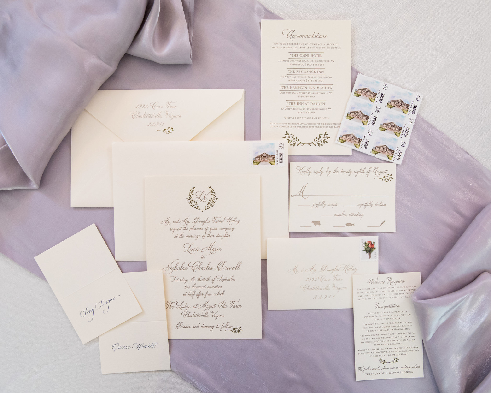 Trust us when we say that no detail was missed when Lucie & Nick planned their big day. Everything was designed and planned to a T. We are so thankful that we had Aaron from Aaron Watson Photography to capture their big day. Aaron always does an amazing job of knowing where the best backdrops and mountain views are, just wait until you see these sunset shots! Lucie & Nick decided bury a bottle of bourbon, a southern superstitious tradition that is supposed to prevent rain on your wedding day. Lucky for them, it worked! They had the most beautiful weather! Enjoy these photos from their big day, congrats Lucie & Nick!