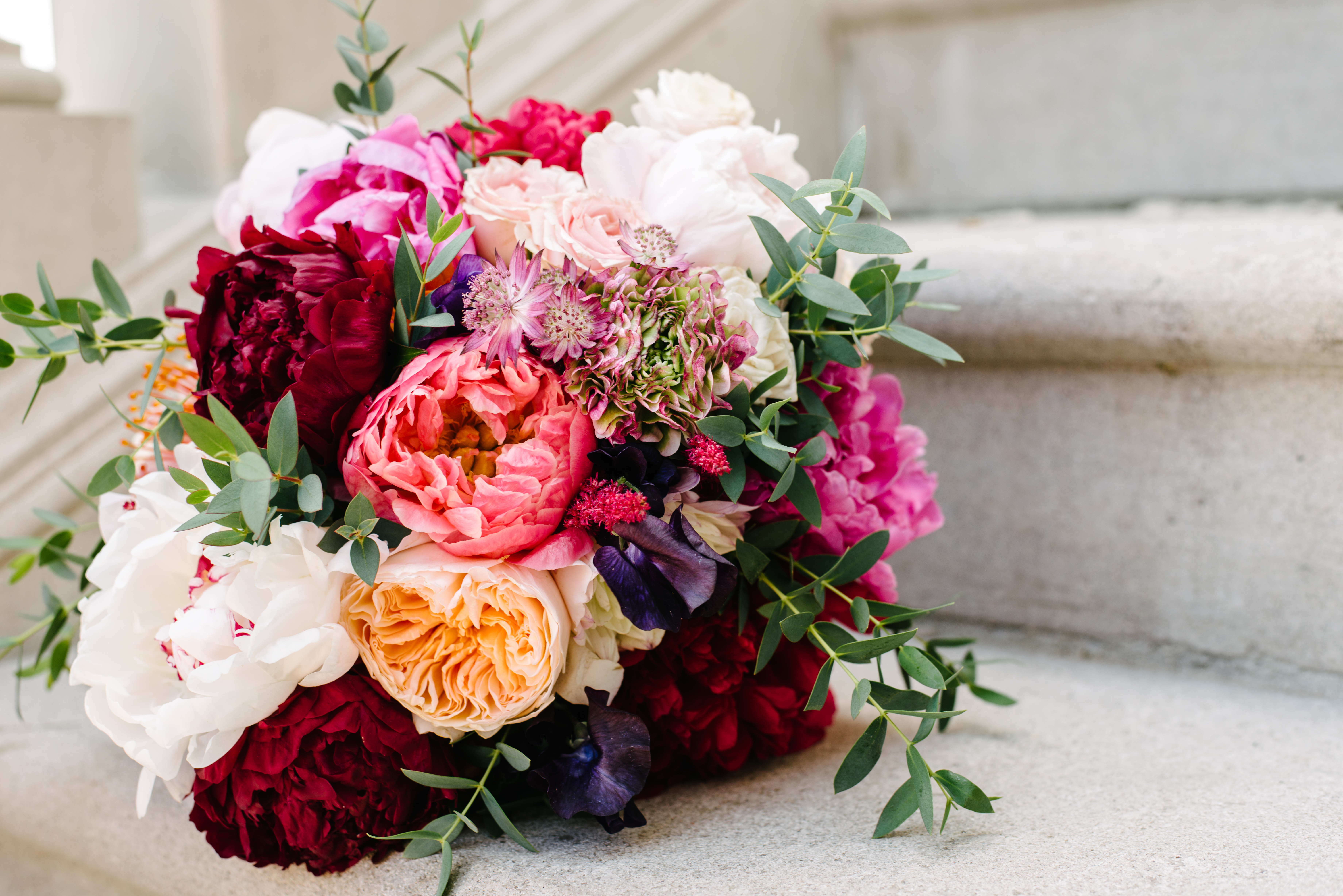 A beautiful mix of deep wine burgundy, hot pink, and curry golden yellows.